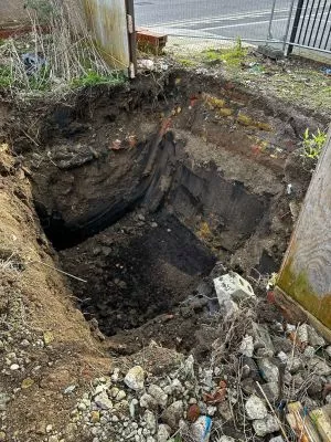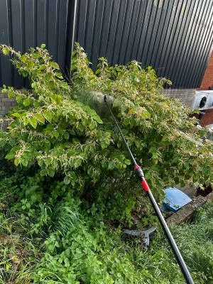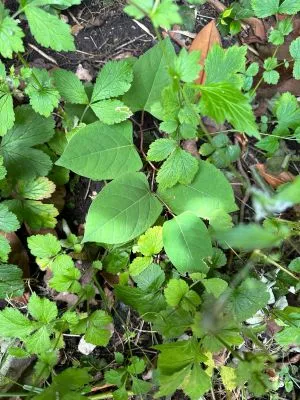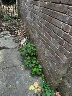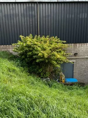Small Japanese knotweed stand in a residential garden + Excavated JK contaminated soils stockpiled ...